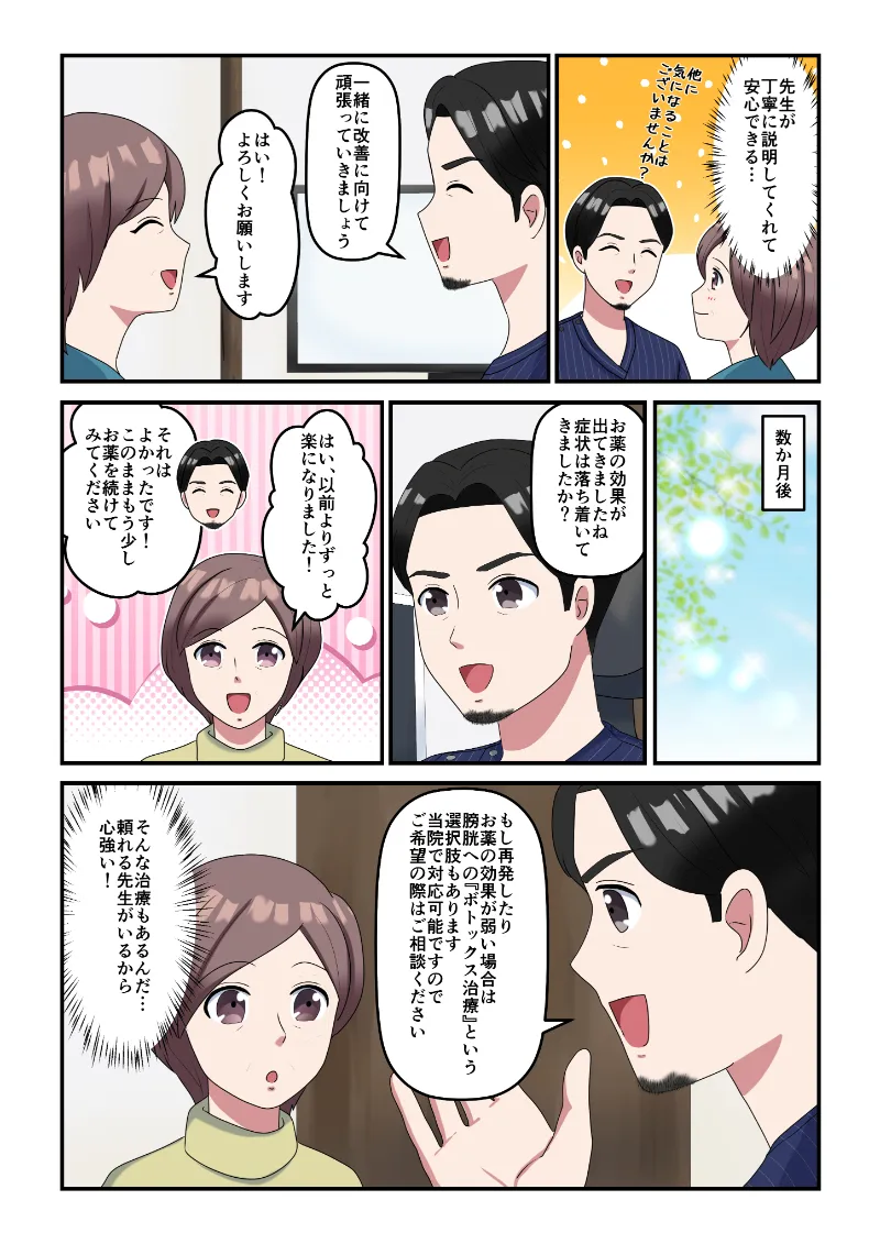 二宮先生「お薬の効果が出てきましたね。症状は落ち着いてきましたか?」