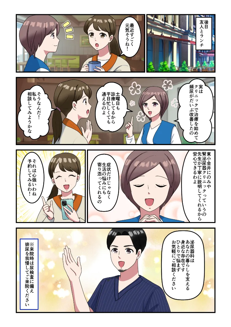 美沙「実は、クリニックで治療を始めて、頻尿がだいぶ改善したの」